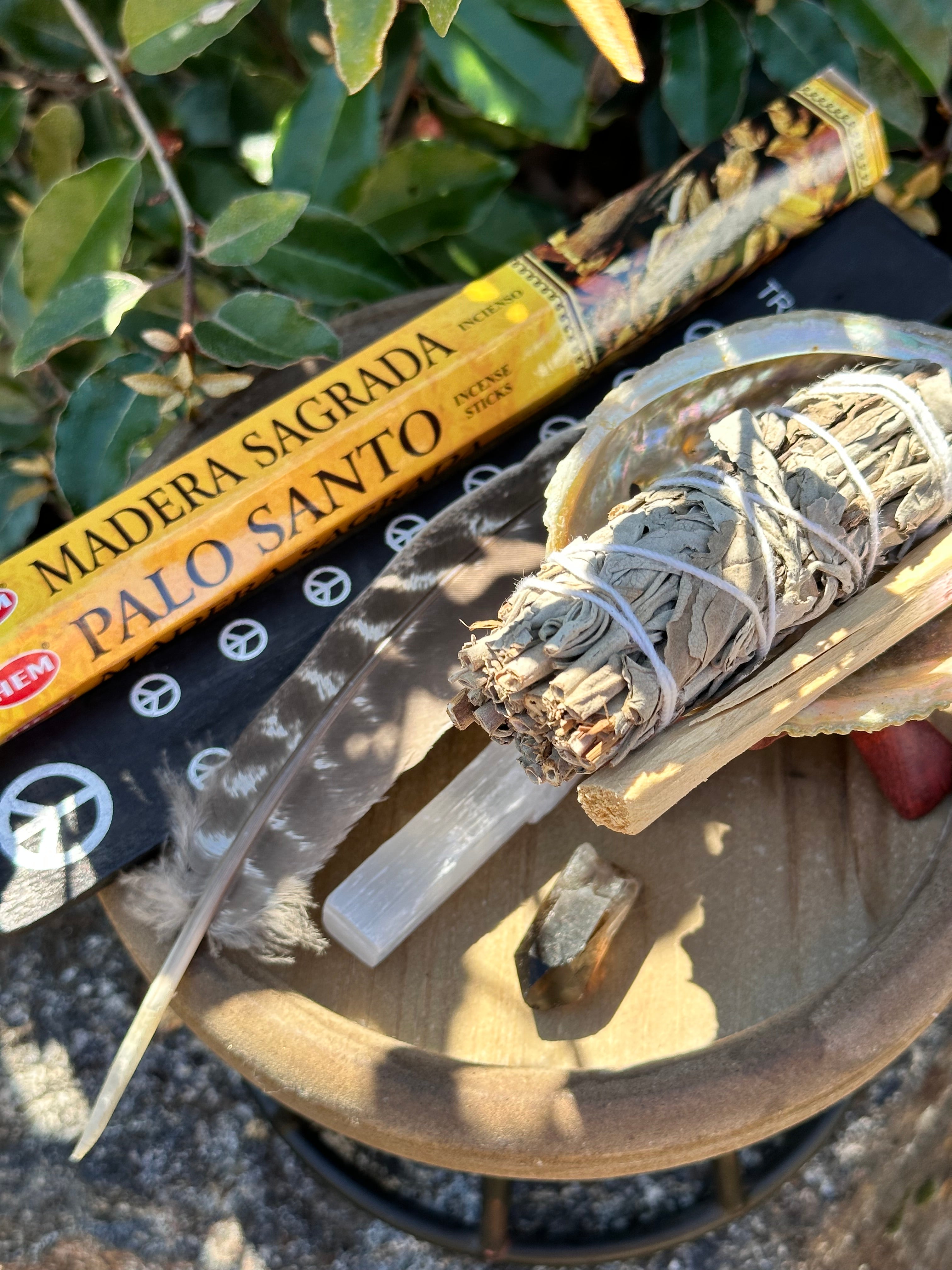 This kit is a must-have for everyone's home. When you're feeling the low vibes creeping in pull out the emergency kit aka the HarleyRae cleansing kit! After an argument and/or negative talk/thinking it is always ideal to Sage it out. After a full house cleaning, top the cleaning off with a good smudging, affirming only good vibrations and blessings.
