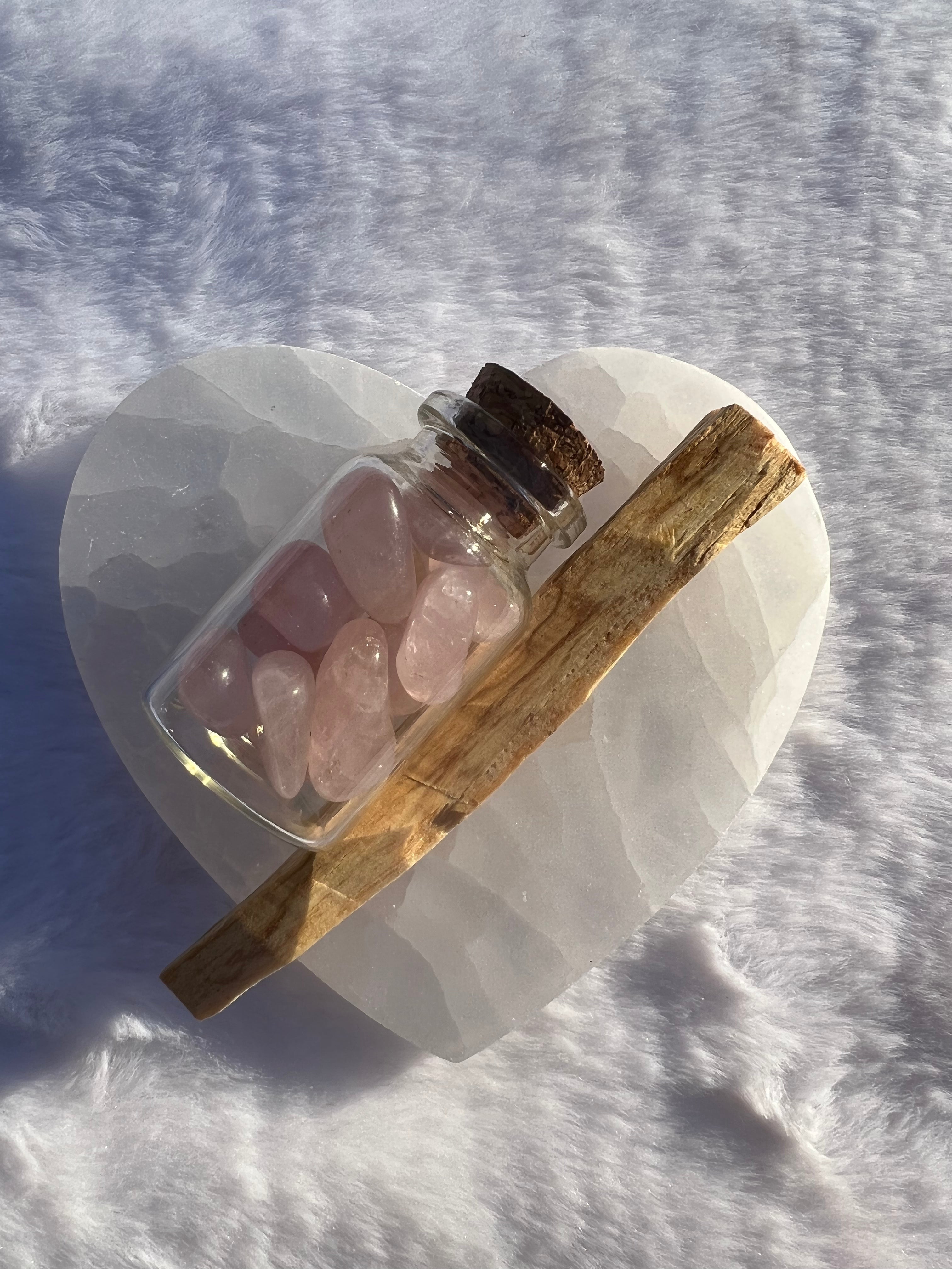 This kit was curated to attract love into your life whether it is a new love or to reignite the spark in an existing love. Included is a Rose Quartz intention jar to manifest love, a Selenite heart charging plate to charge your intention jar and a Palo Santo stick to cleanse any stagnant energy in this area of your life.