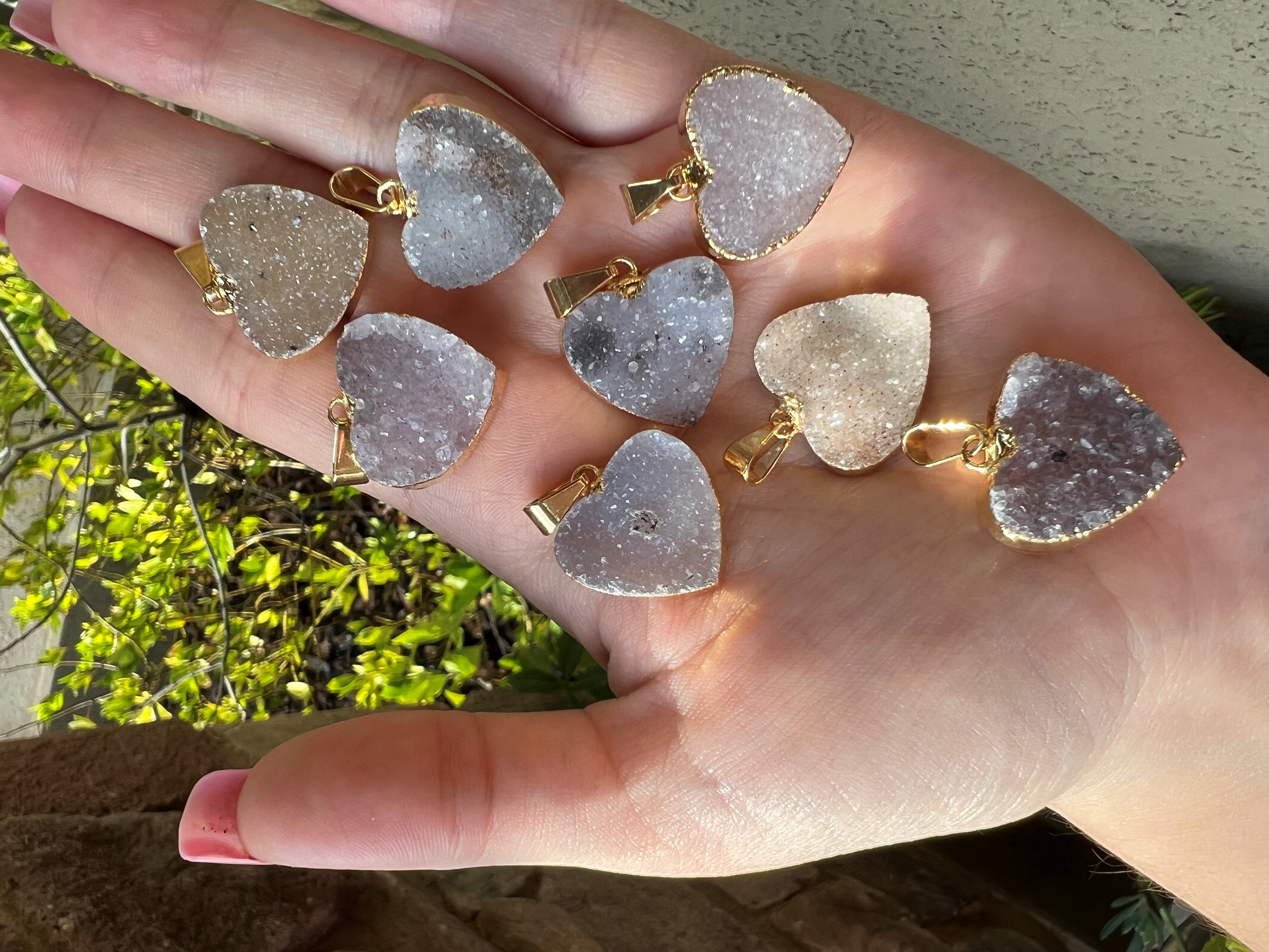 A sparkling reminder of inner peace and beauty, this pendant showcases the natural shimmer of druzy agate, symbolizing balance and strength. -