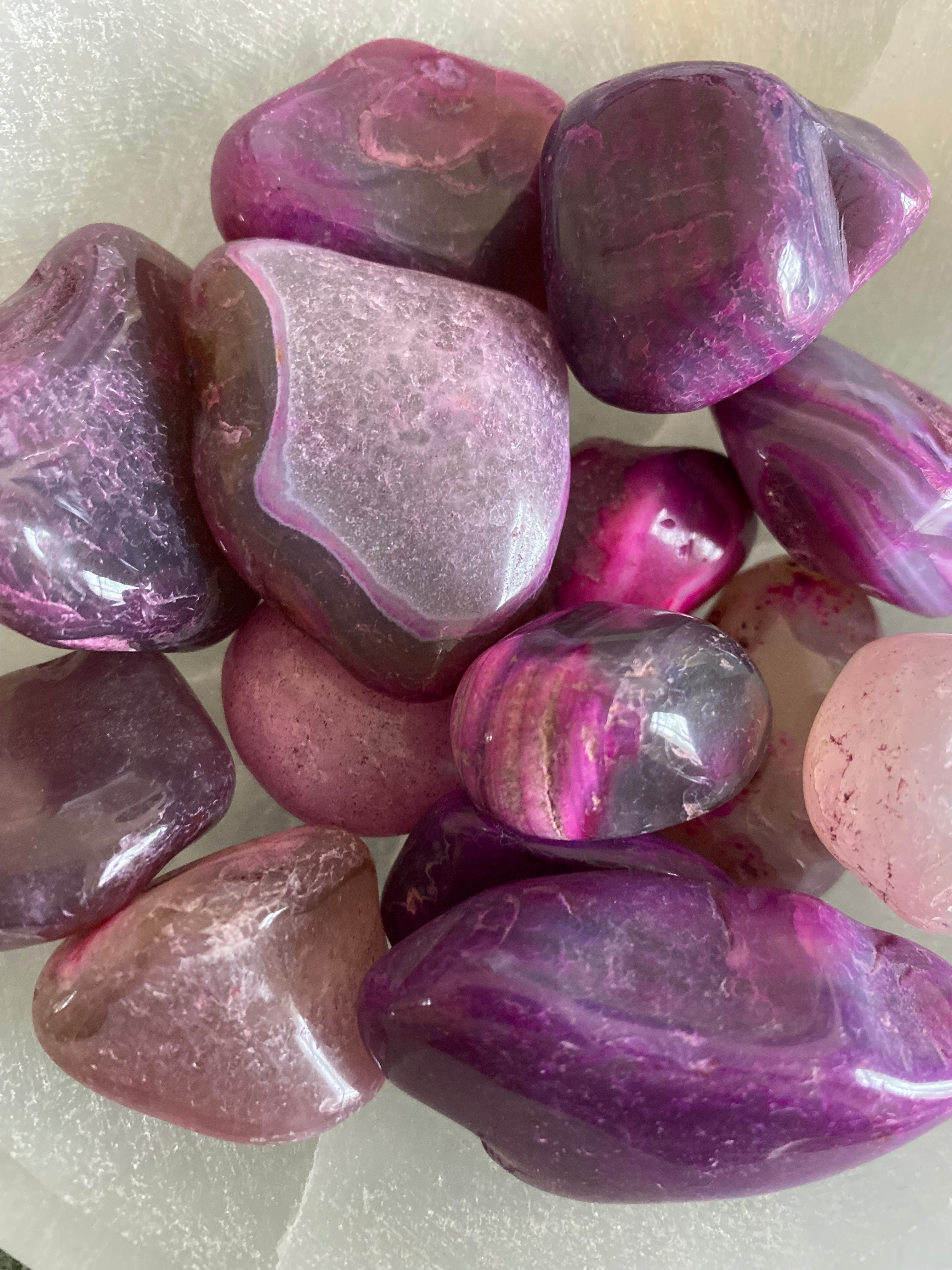Pink agate is known to aid one in overcoming heart bitterness and stabilizing the aura. It is extremely calming and soothing; it can dismiss fear and instill positive energy, courage, and strength to restore or boost self-confidence.