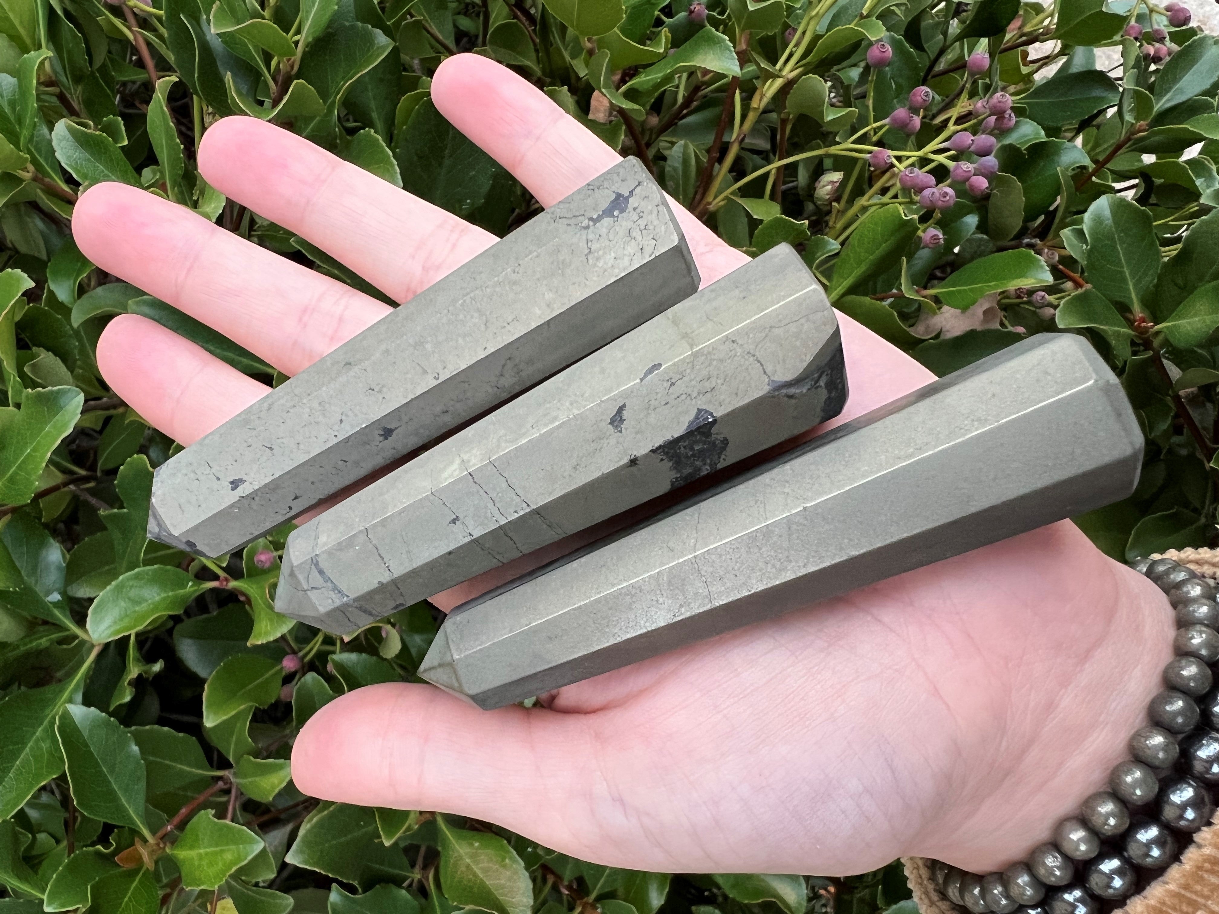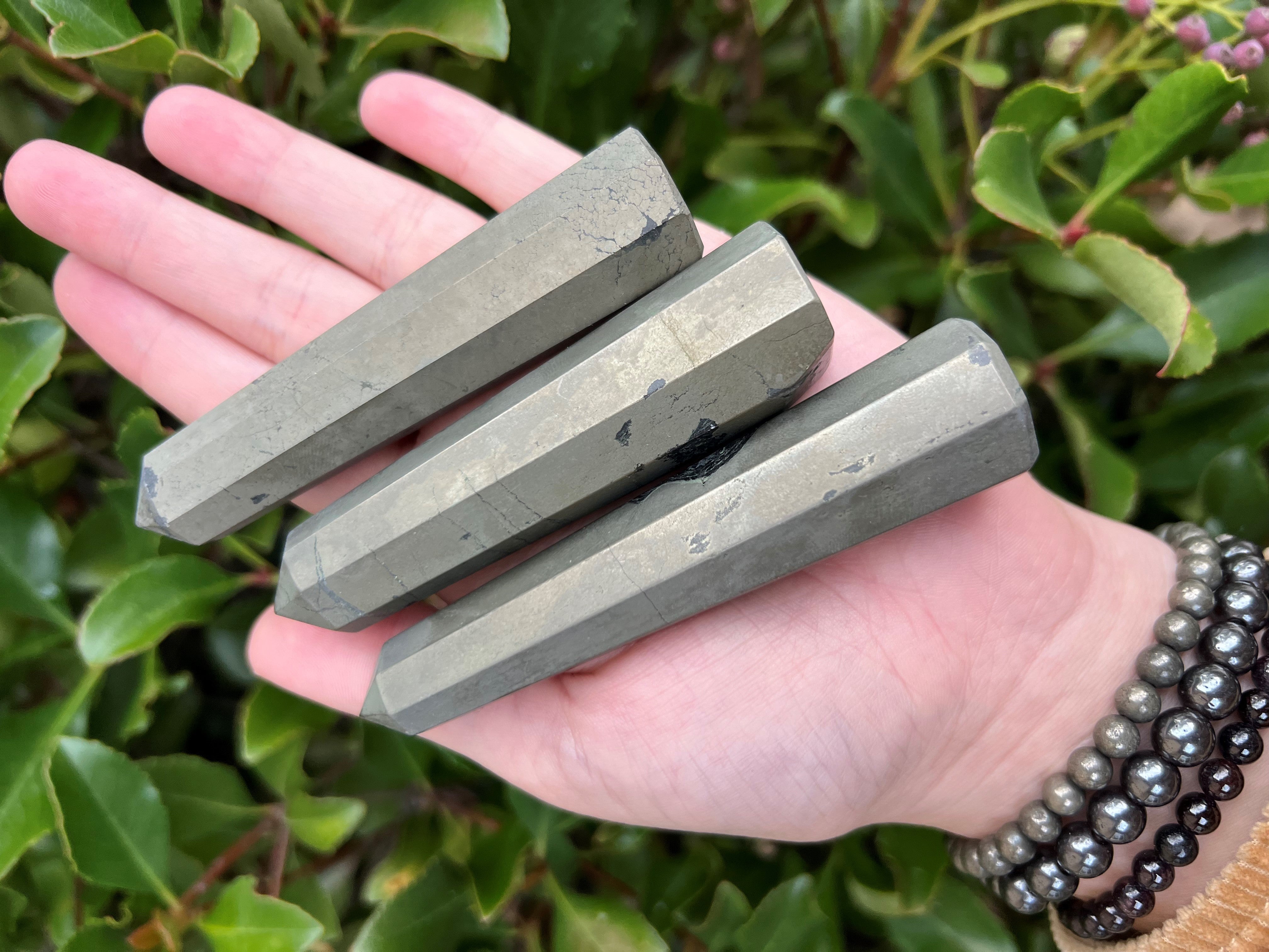 Pyrite is a powerful protective stone that creates a shield against negative energy. Pyrite has a connection to the solar plexus chakra and is used to increase strength, energy, willpower, and confidence. It’s also a wonderful abundance stone, encouraging wealth, prosperity, and success. In addition, pyrite can help to release negative energy and fears, including fears that may be blocking success. It also helps to block EMF waves. It’s connected to the sun which has a bright, powerful energy.